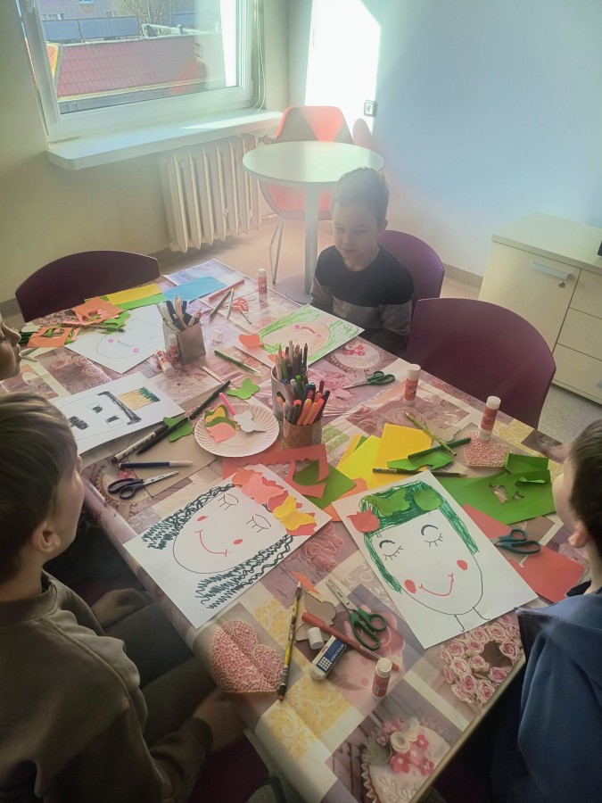 W dalszej części dzieci pracowały w grupach, tworząc rysunki przedstawiające najśmieszniejsze sceny z filmu.