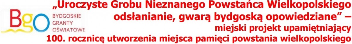 „Uroczyste Grobu Nieznanego Powstańca Wielkopolskiego odsłanianie, gwarą bydgoską opowiedziane” –miejski projekt upamiętniający 100. rocznicę utworzenia miejsca pamięci powstania wielkopolskiego.